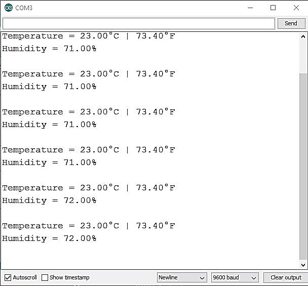 7. The `Serial.print()` and `Serial.println()` statements are used to display the temperature and humidity values on the serial monitor.