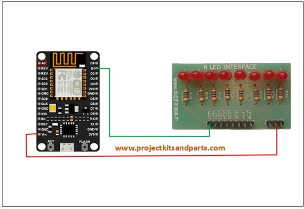 Connections: ESP8266 Board Led Module 5V Vcc(5V) D1 Led pin 1